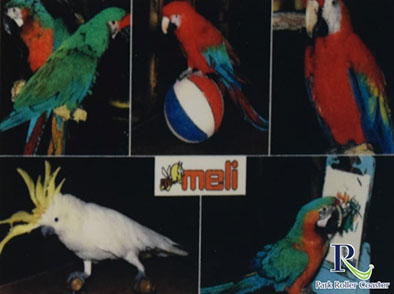 Les visiteurs découvrent une salle de spectacle mettant en scène des peroquets.