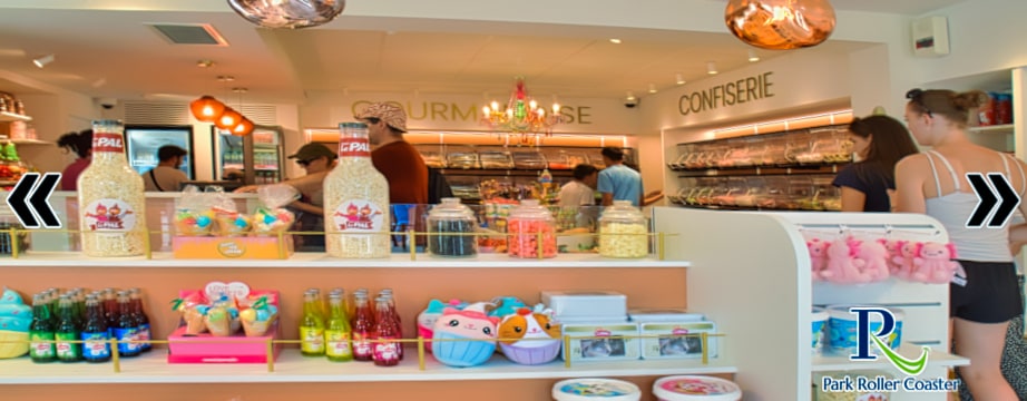 On y retrouve un large choix de bonbons traditionnels, sucettes artisanales, chocolats, guimauves et spécialités régionales. La boutique propose aussi des confiseries à l’effigie des mascottes et des attractions du Pal, idéales pour rapporter un souvenir savoureux de sa visite.