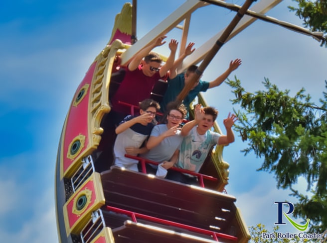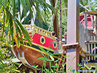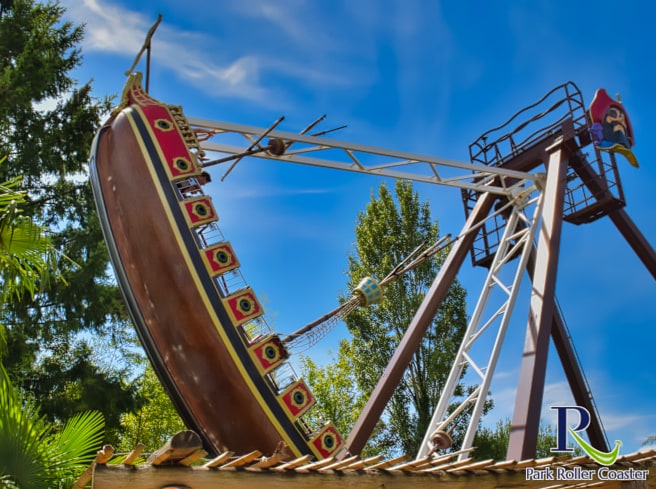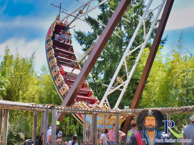 Aargh ! Oserez-vous faire un tour sur ce bateau sauvage ? Ce navire oscillant se trouve dans la zone thématique marocaine.