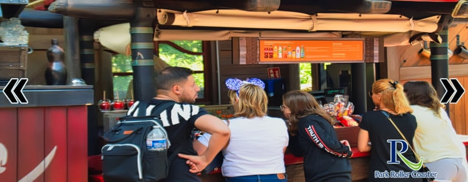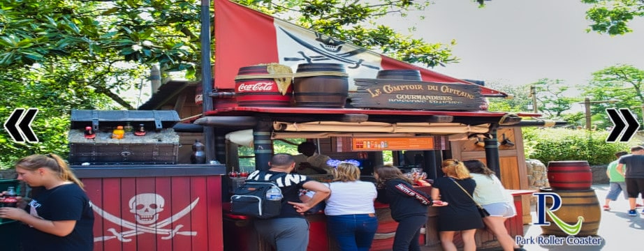 Face à l'attraction des pirates de caraïbes. Vous pouvez vous rafraîchir ou les bon Pop-Corn fait sur place.