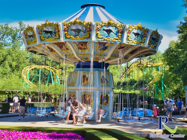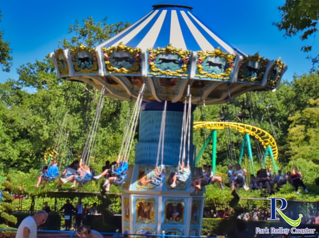 Ce manège à balançoires occupe une place toute particulière dans le parc : au bout du long boulevard qui vous mène de l'entrée du parc jusqu'au cœur du parc.