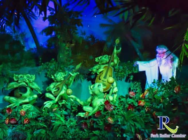 Dans l' Efteling , c'est la vingt-troisième représentation sur le parcours dans la Forêt des Contes , entre la Prinsenpoort et le théâtre en plein air . Il montre au moyen d'une scène intérieure entièrement conditionnée, où les animatroniques des sept elfes dans des nénuphars, la sorcière et une bande composée de quatre grenouilles et trois oies dans un décor de jungle reçoivent une courte performance sur la musique de Bert Kaempfert . Battement africain . Le conte de fées a été conçu par Anton Pieck et techniquement élaboré par Peter Reijnders . Il a été ouvert en 1966et était la plus grande attraction qu'Efteling avait construite jusque-là.