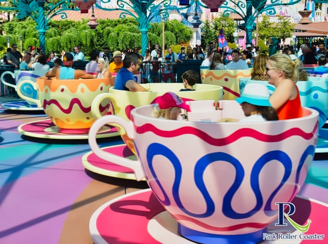 Les tasses à thé de Mad Hatter sont situées dans le centre de Fantasyland, en face du Curious Labyrinth d'Alice. La soi-disant promenade dans la tasse à café est une promenade rapide dont les gondoles tournent autour de leur propre axe. En outre, vous pouvez toujours utiliser cette gondole, ce qui, en particulier dans ce système, conduit à des gobelets à rotation très rapide.