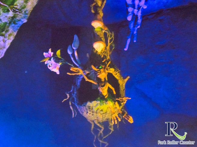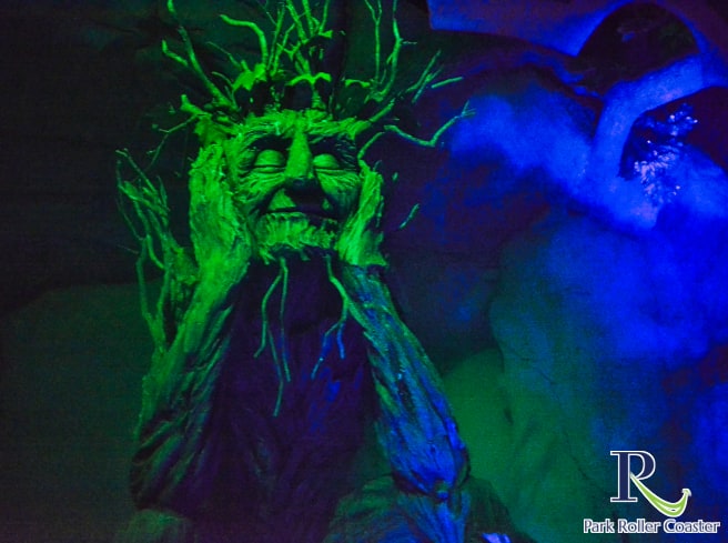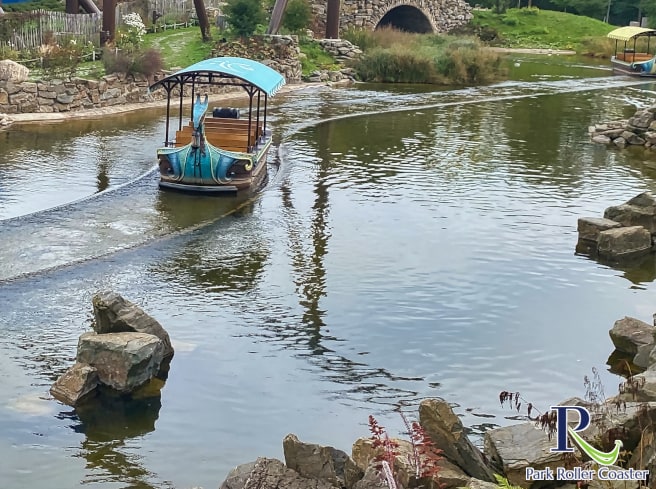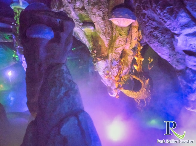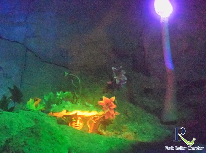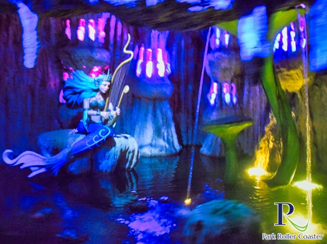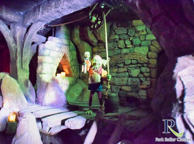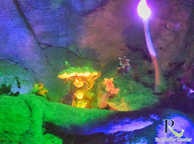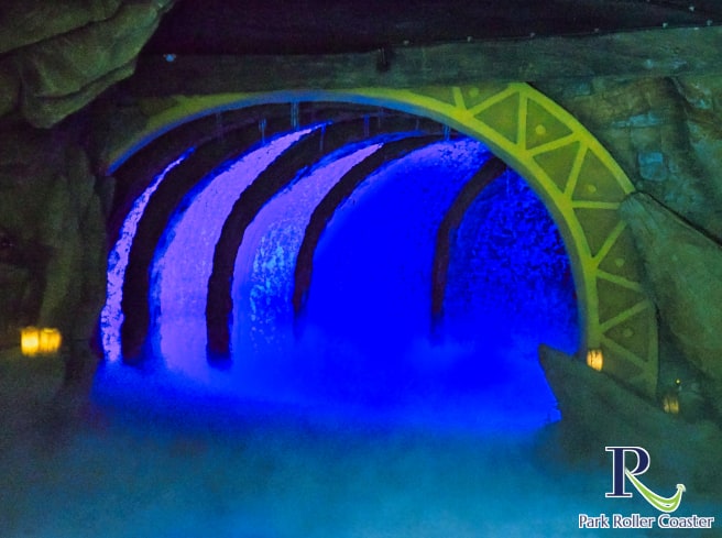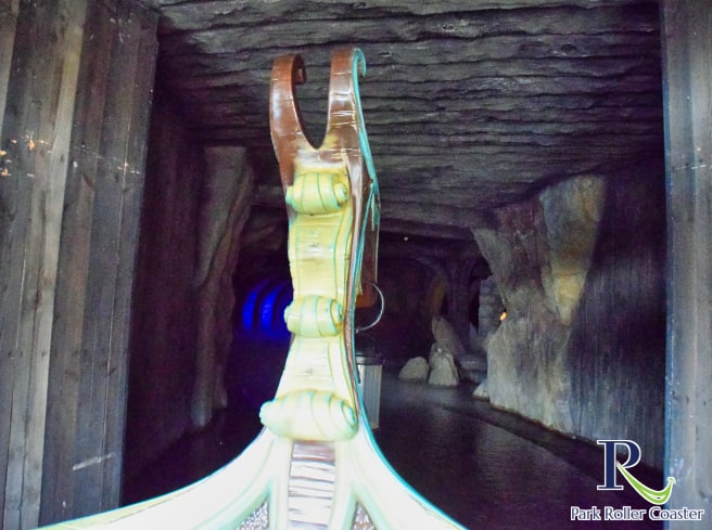 Le voyage relaxant à travers l'eau large prend un total de 12 minutes. Mais à mi-chemin du voyage, vous tombez sur une grotte qui vous emmène à travers le monde fabuleux de Merlin et réserve toutes sortes de scènes magiques aux visiteurs. À proprement parler, il y a quatre scènes avec 18 animatroniques qui se concentrent clairement sur le thème classique et créent également une excellente illusion grâce à de nombreux effets de lumière et d'eau. En fait, après un court laps de temps, vous êtes kidnappé dans le monde de Merlin. Le passage dure presque 2 minutes et on souhaiterait que cette partie de première classe dure beaucoup plus longtemps.