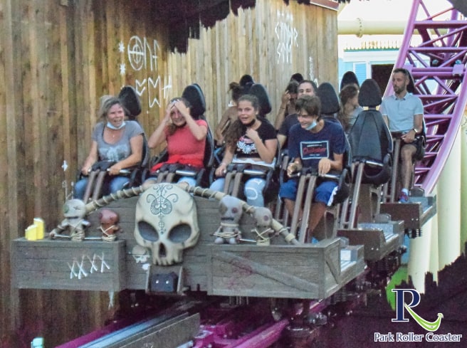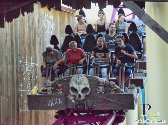 Walibi Rhône-Alpes a en effet ouvert en 2019 cet Infinity coaster signé Gerstlauer à la thématisation plutôt originale : le vaudou ! Du haut de ses 31 mètres, Mystic tire son originalité d’un parcours non linéaire : après une flèche (passée la tête à l’envers) qui se termine par un rail cassé, le train repart en arrière et refait la dernière partie du parcours dans le sens inverse avant de rentrer en gare grâce à une plaque tournante, première dans l’histoire du constructeur !