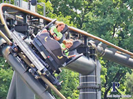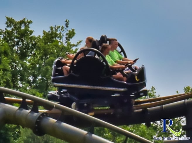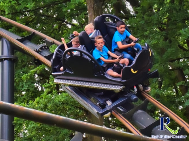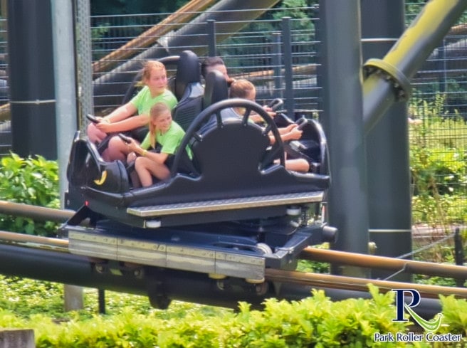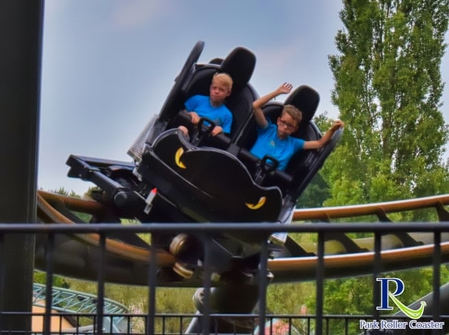 Immédiatement après la sortie de la gare, vous pouvez monter l'ascenseur de 17 mètres de haut. Vient ensuite une première chute inclinée latéralement, mais peu profonde et qui se termine par un arc ascendant au droit du premier frein de bloc. En cela, la voiture est freinée à presque zéro. Dans le même temps, en fonction de la répartition du poids, la voiture de montagnes russes commence à tourner brusquement. Et puis Dizz prend enfin de l'ampleur. Parce que maintenant il descend dans la prochaine goutte beaucoup plus profonde, vers l'eau. C'est là que se termine la section de l'itinéraire qui traverse le lac et qui se poursuit avec une colline de temps d'antenne, au-dessus du chemin du parc, dans la deuxième partie de l'itinéraire. Après un autre frein de bloc, la piste passe par quelques courbes et un petit saut de lapin avant de déborder la tête des autres visiteurs du parc, retour vers le lac. Enfin, derrière un dernier frein à bloc, il y a un enchaînement de courbes et un autre bunny hop. Après cela, le trajet s'achève, selon la rotation de la voiture, un peu rude au freinage final.