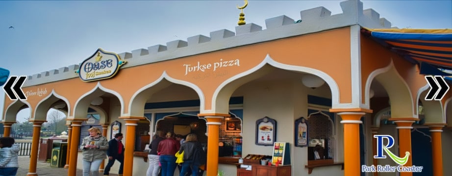 L'assortiment de fruits frais et de jus a été échangé contre celui de pizza turque et de doner kebab, encore souligné par les textes sur la façade et les peintures murales à l'arrière du bâtiment qui ont ensuite été ajoutées.