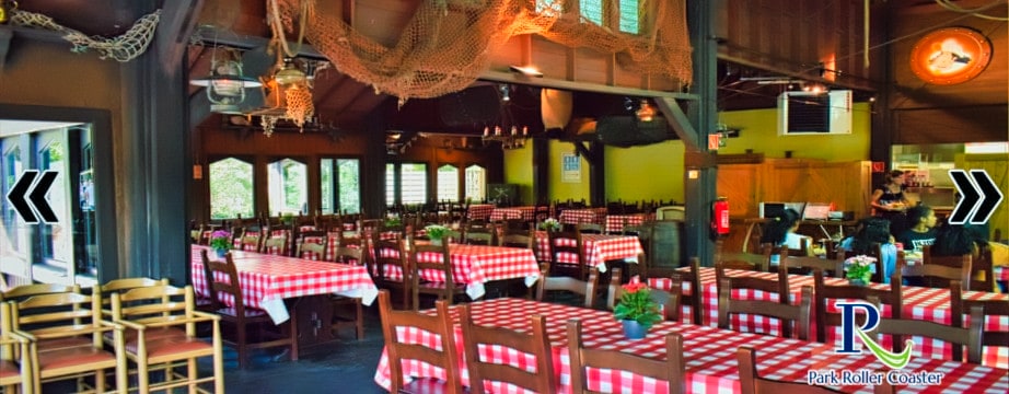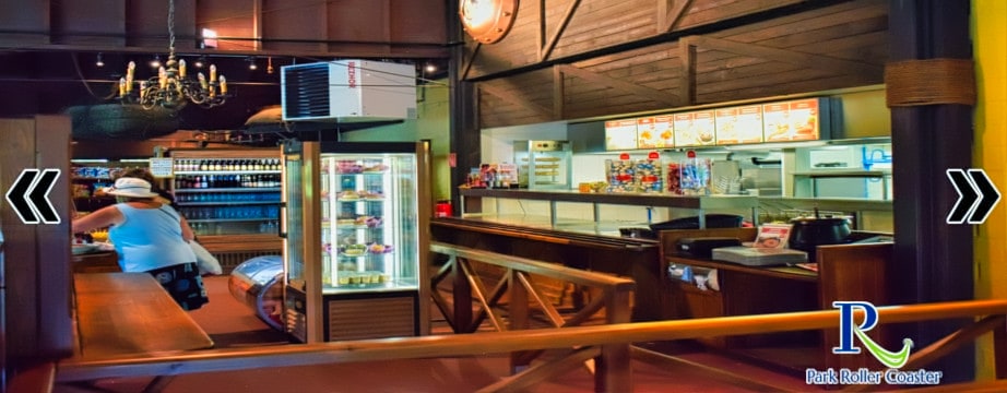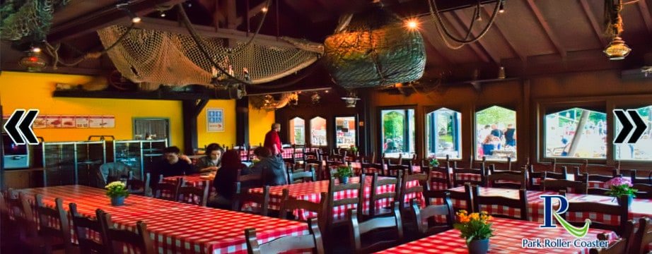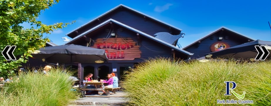 Emparez-vous d’une table sur la grande terrasse ensoleillée et profitez de la vue sur l’impressionnante Zone des Pirates.