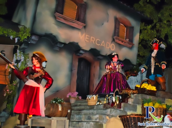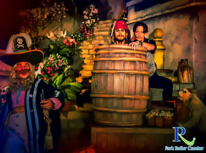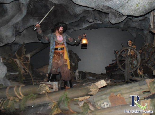 Pirates of the Carribean est un tour dans l’obscurité de l’eau avec le thème des pirates. Cela va si loin que même la salle d'attente est très largement thématisée. Vous faites donc la connaissance des collègues pirates qui n’ont pas survécu à l’embarquement du bateau et qui persévèrent dans les anciens cachots de la forteresse des pirates.