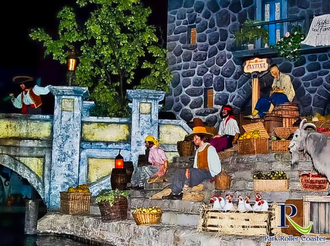 Il y a un total de deux gouttes pendant le trajet mais vous ne vous mouillez pas très fort, juste quelques petites éclaboussures, rien de plus. La version parisienne des Pirates des Caraïbes est la seule balade à 2 gouttes. Les autres versions de Disneyland Anaheim / Floride / Tokyo / Shanghai n’ont chacune qu’un départ. Depuis 2002, l’une des dernières scènes (après 2. Drop) a tourné une photo d’Onride pouvant être achetée à la boutique.