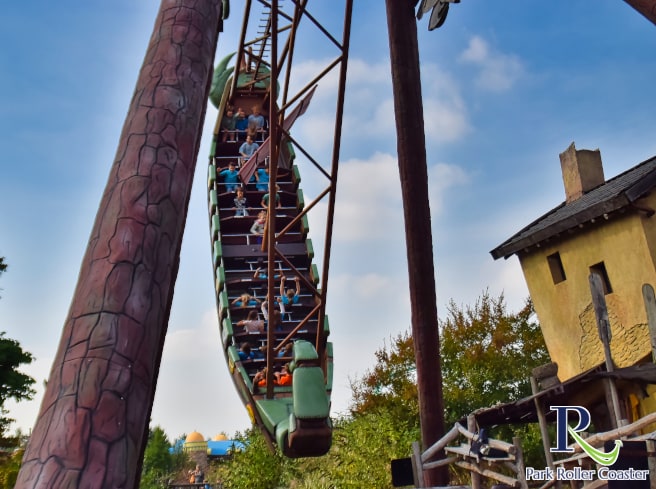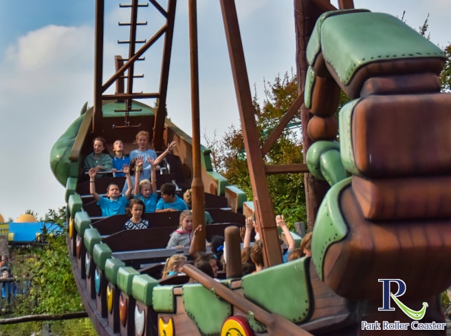 La nouveauté la plus notable dans ce domaine de loin est la balançoire Scorpios. Construit par Metallbau Emmeln du nord de l'Allemagne, Scorpios est particulièrement convaincant en raison de la thématisation élaborée. Là où normalement un bateau pirate sert de gondole, dans ce cas, il s'agit d'un scorpion surdimensionné, encadré dans le thème antique autour de Troie. Une combinaison réussie qui montre que même des attractions très classiques peuvent être appréciées sous une nouvelle forme. Mais Scorpios n'est pas tout à fait aussi classique, car le bateau à balançoire oscille beaucoup plus loin que les systèmes précédents du fabricant.