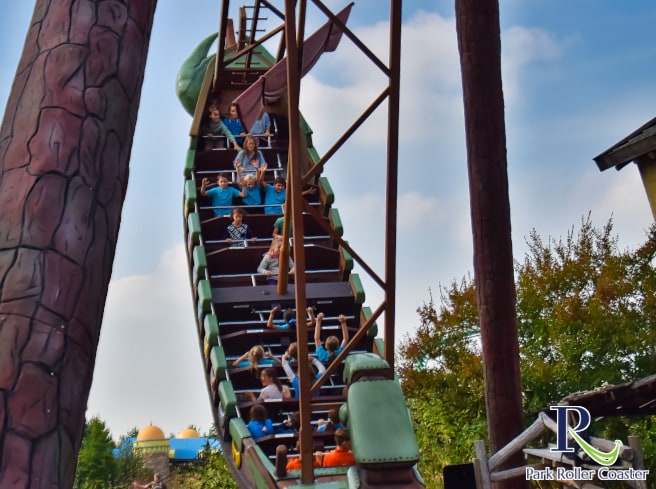 75 degrés par rapport à l'angle d'inclinaison habituel de 60 degrés. Incidemment, l'attraction est accompagnée de sa propre bande sonore à bord. Aussi une particularité
