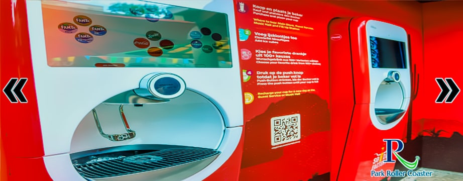 Préparez votre propre boisson à tout moment de la journée. Il y a trois emplacements dans le parc avec une usine de soda. Vous trouverez ici une large gamme de boissons gazeuses régulières et zéro sucre, mais aussi du thé glacé ou de l'eau avec un goût. Vous pouvez choisir parmi plus de 100 saveurs!