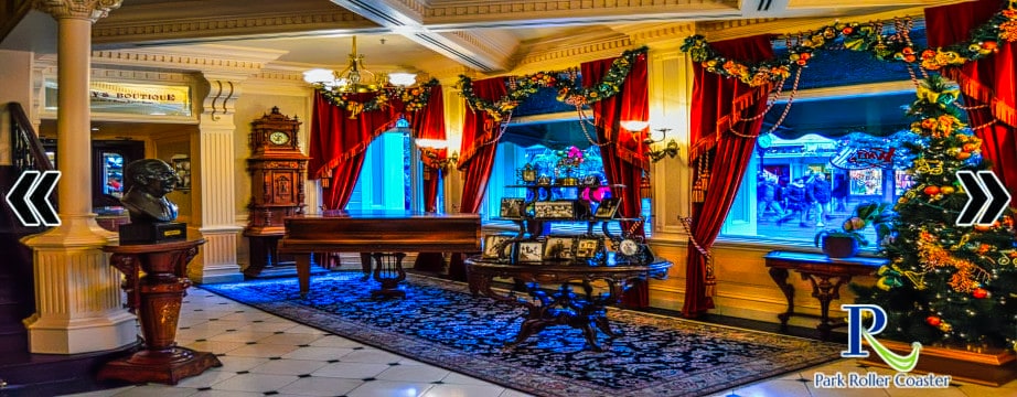 Big Thunder Mountain, Phantom Manor et le Débarcadère de Thunder Mesa dominent cette salle à l'allure de bibliothèque qui reprend le thème de la ville hantée de Thunder Mesa.