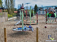 Une grande aire de jeux avec un vaste parcours d'escalade.